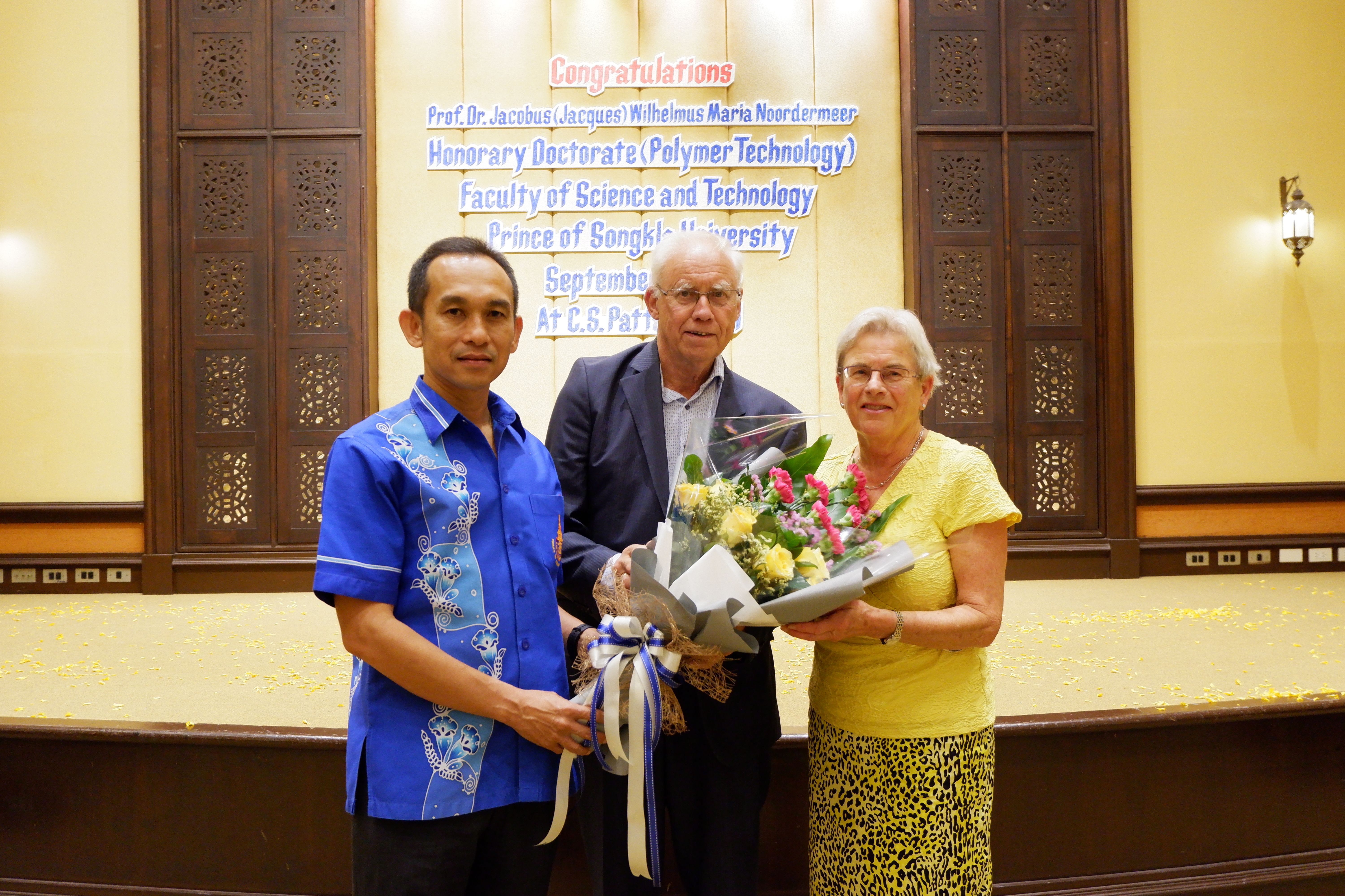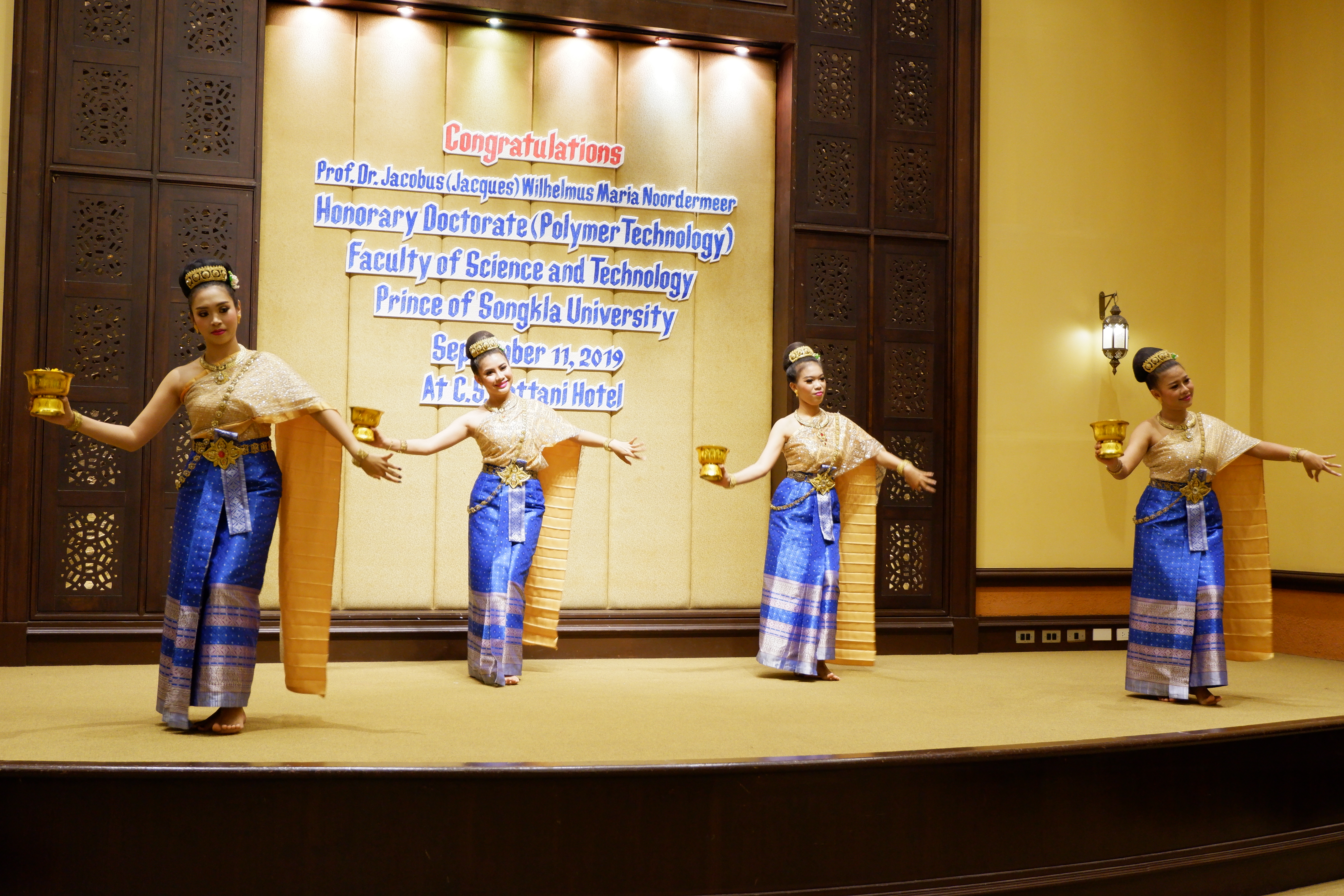 เมื่อวันที่ 11 กันยายน 2562 คณะวิทยาศาสตร์และเทคโนโลยี จัดงานเลี้ยงแสดงความยินดีกับ Prof.Dr.Jacobus (Jacques) Wilhelmus Maria Noordermeer ซึ่งคณะฯ เสนอชื่อให้ได้รับตำแหน่งดุษฎีบัณฑิตกิตติศักดิ์