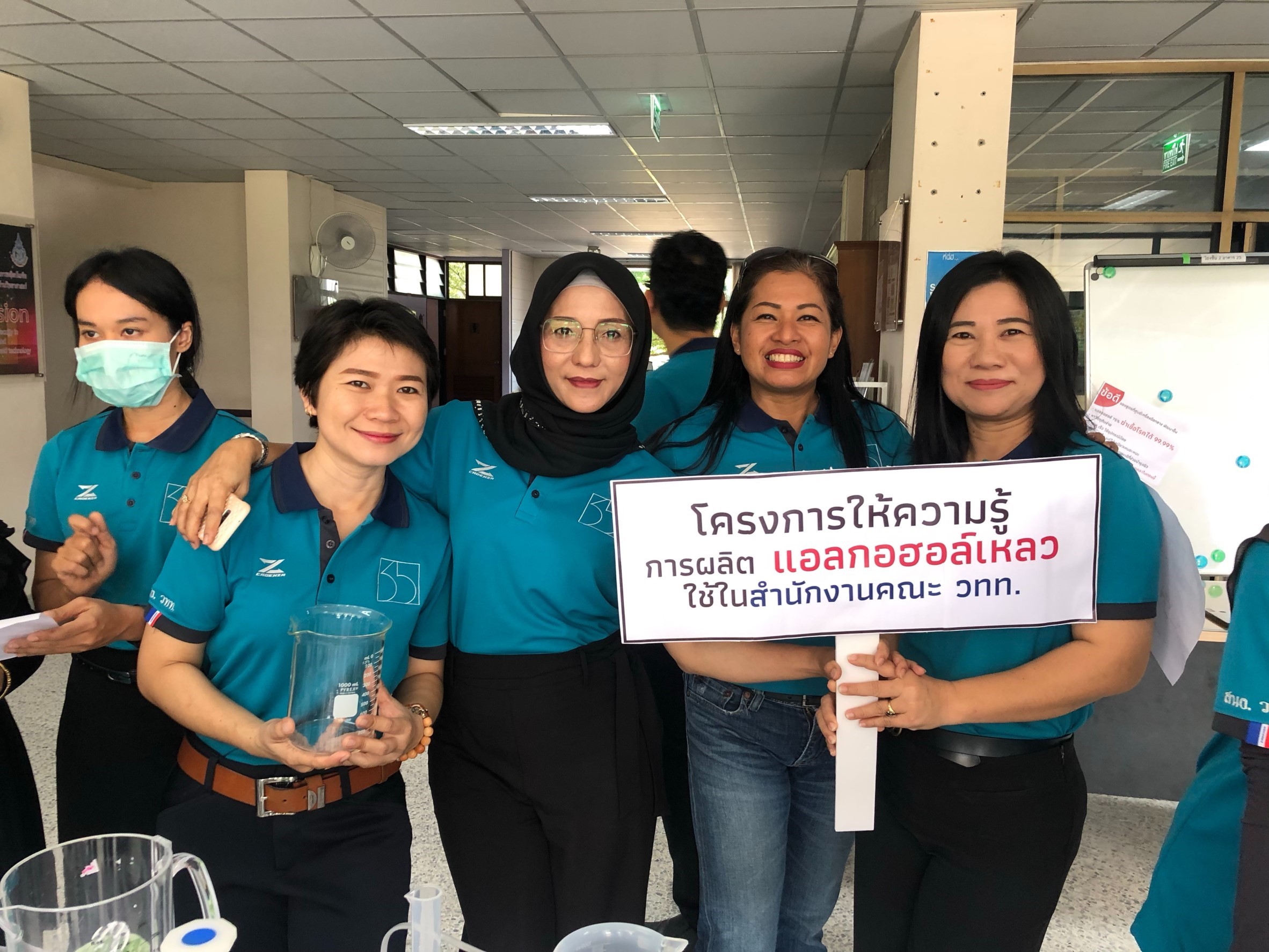 เมื่อวันที่ 11 มีนาคม 2563 ศูนย์เครื่องมือกลาง จัดโครงการให้ความรู้ในการผลิตแอลกอฮอล์เหลว 75% ผสม Alo Gel สำหรับทำความสะอาดมือแก่บุคลากรสำนักงานคณะวิทยาศาสตร์และเทคโนโลยี เพื่อนำผลผลิตแจกจ่ายไปยังหน่วยงานภายในคณะฯ ต่อไป