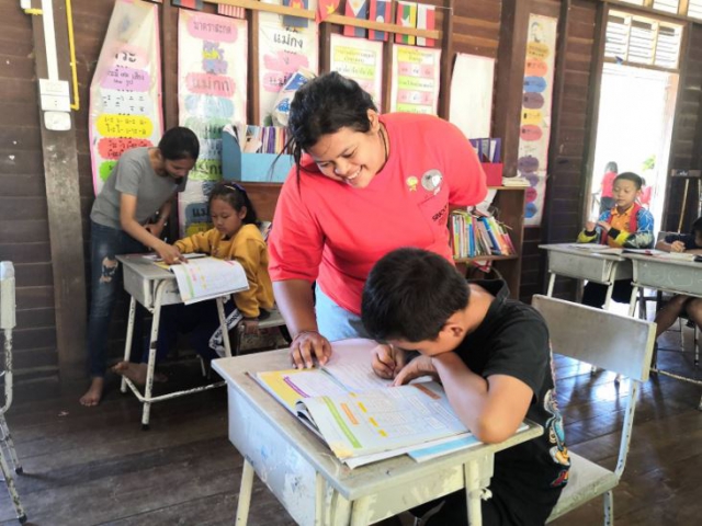นักศึกษาระดับปริญญาตรี-โท สาขาฟิสิกส์ และอาจารย์ที่ปรึกษาโครงการ ผู้ช่วยศาสตราจารย์ ดร.พวงทิพย์ แก้วทับทิม แผนกวิชาฟิสิกส์ สาขาวิชาวิทยาศาสตร์ คณะวิทยาศาสตร์และเทคโนโลยี มหาวิทยาลัยสงขลานครินทร์ วิทยาเขตปัตตานี ได้จัดกิจกรรมทางวิชาการให้แก่น้อง ๆ นักเรียน ประกอบด้วยกิจกรรมครูอาสาสอนหนังสือพร้อมกิจกรรมสันทนาการที่ทำให้น้อง ๆ ได้ทั้งความรู้และความสนุก และกิจกรรมปรับปรุงภูมิทัศน์ พัฒนาโรงเรียนให้น่าอยู่ โดยการทำความสะอาด ทาสีฝาผนัง และจัดสวนหย่อม ณ โรงเรียนห้วยต้นนุ่นวิทยา อำเภอขุนยวม จังหวัดแม่ฮ่องสอน