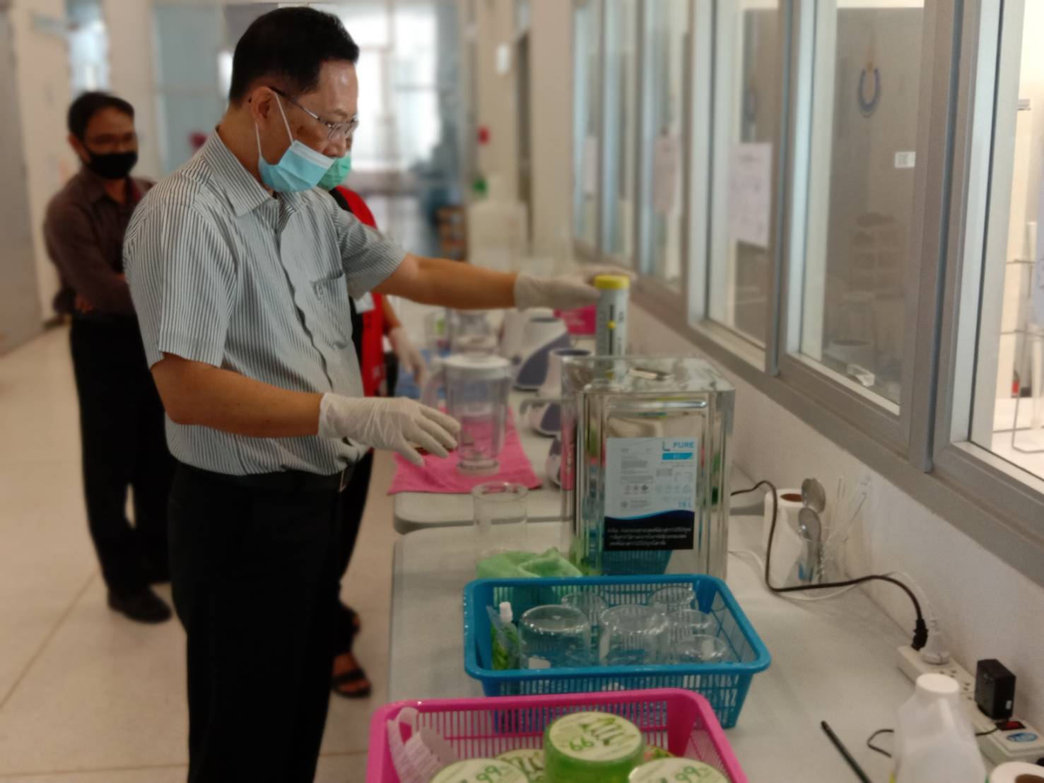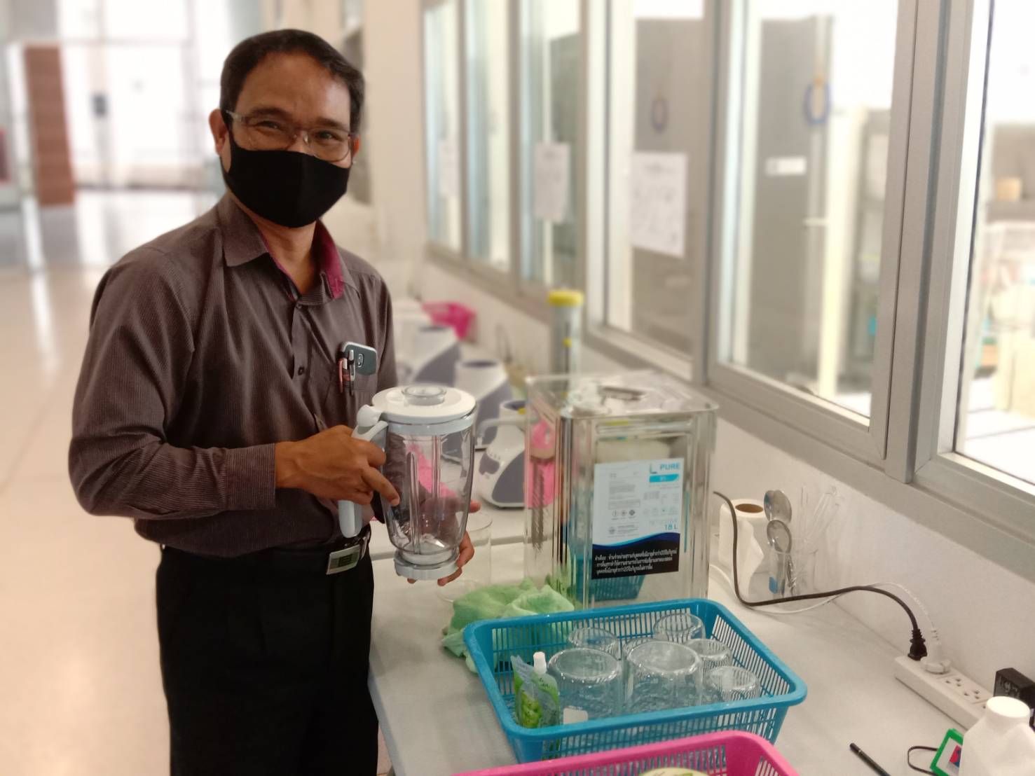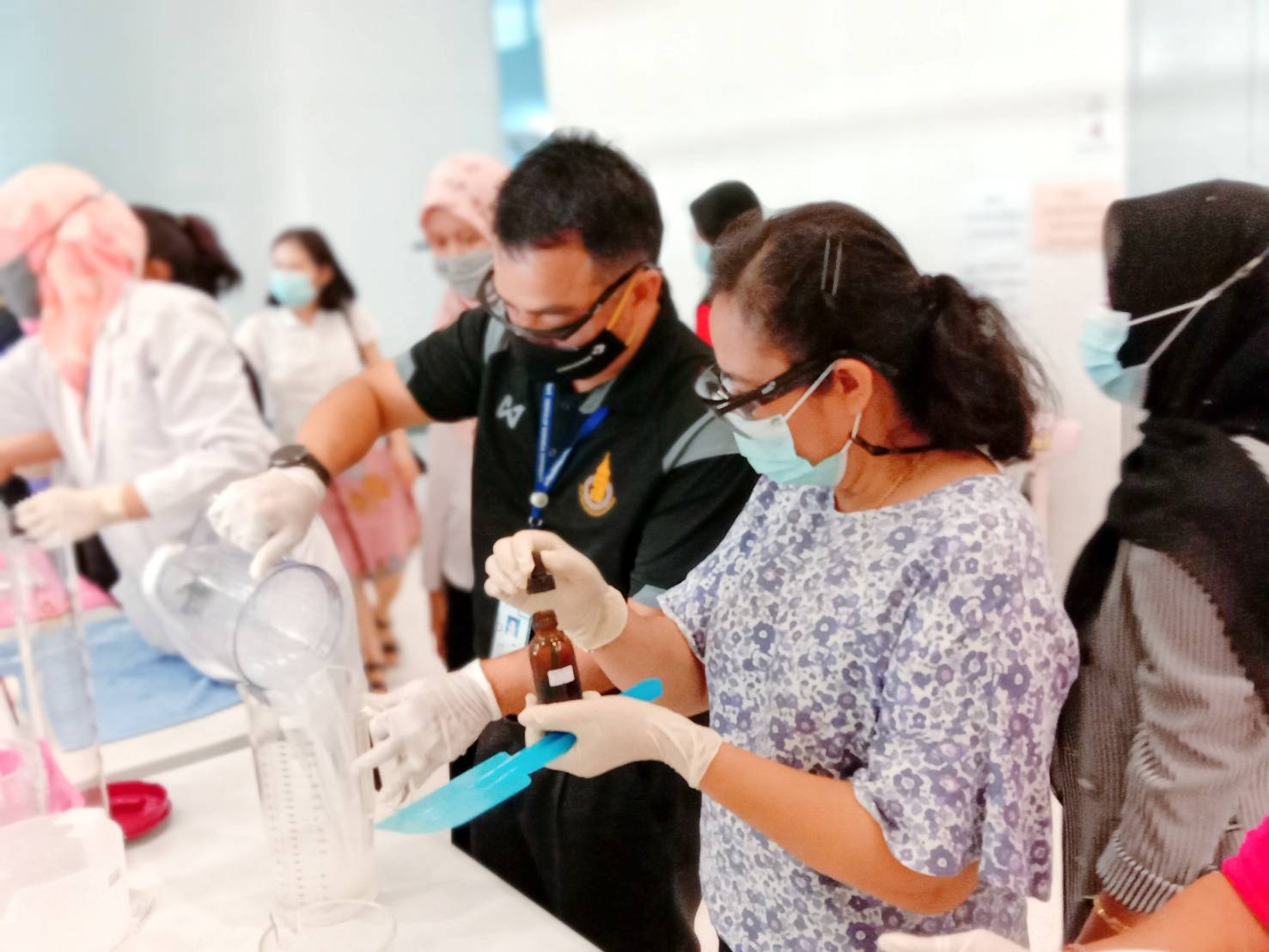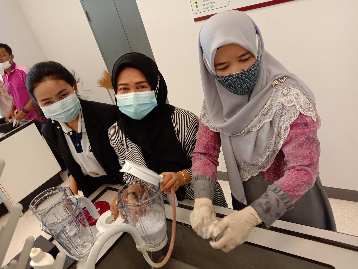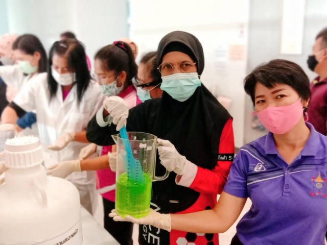เมื่อวันที่ 29 ธันวาคม 2563 ที่ผ่านมา สำนักงานบริหาร ร่วมกับ ศูนย์เครื่องมือกลาง คณะวิทยาศาสตร์และเทคโนโลยี ร่วมกันผลิตแอลกอฮอล์เหลว 75% สูตร AloGel สำหรับล้างทำความสะอาดมือ (ได้รับอนุสิทธิบัตรแล้ว) ในการผลิตครั้งนี้ ได้ผลผลิตจำนวน 22,000 ซี.ซี. ซึ่งสามารถแบ่งบรรจุใส่ขวดสเปรย์ขนาก 50 ซี.ซี. ได้จำนวน 440 ขวด เพื่อให้บุคลากรของคณะฯ และผู้ที่มาติดต่อได้ใช้ป้องกันเชื้อโรคกันต่อไป