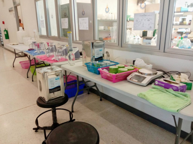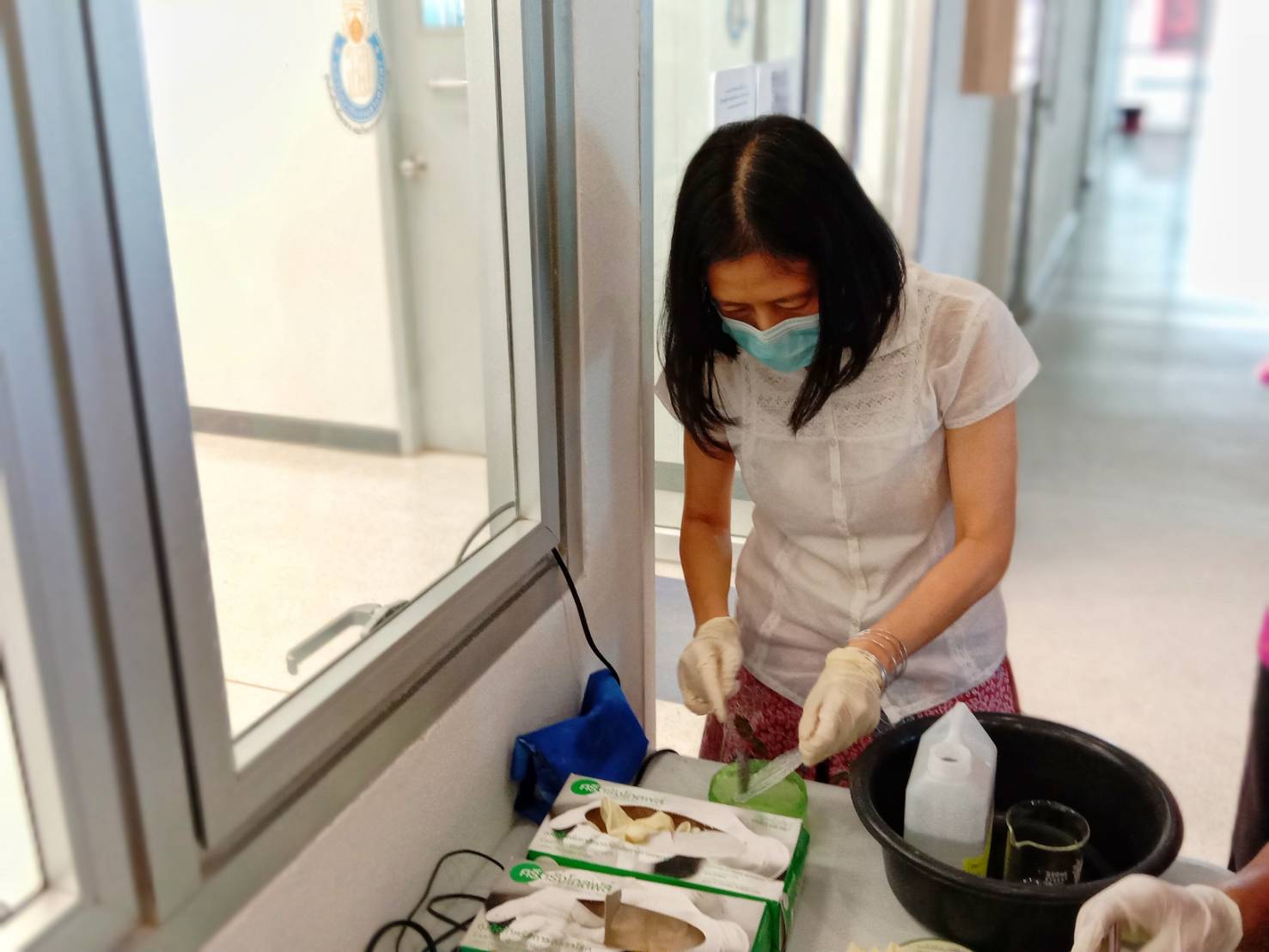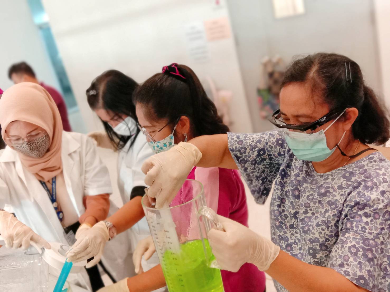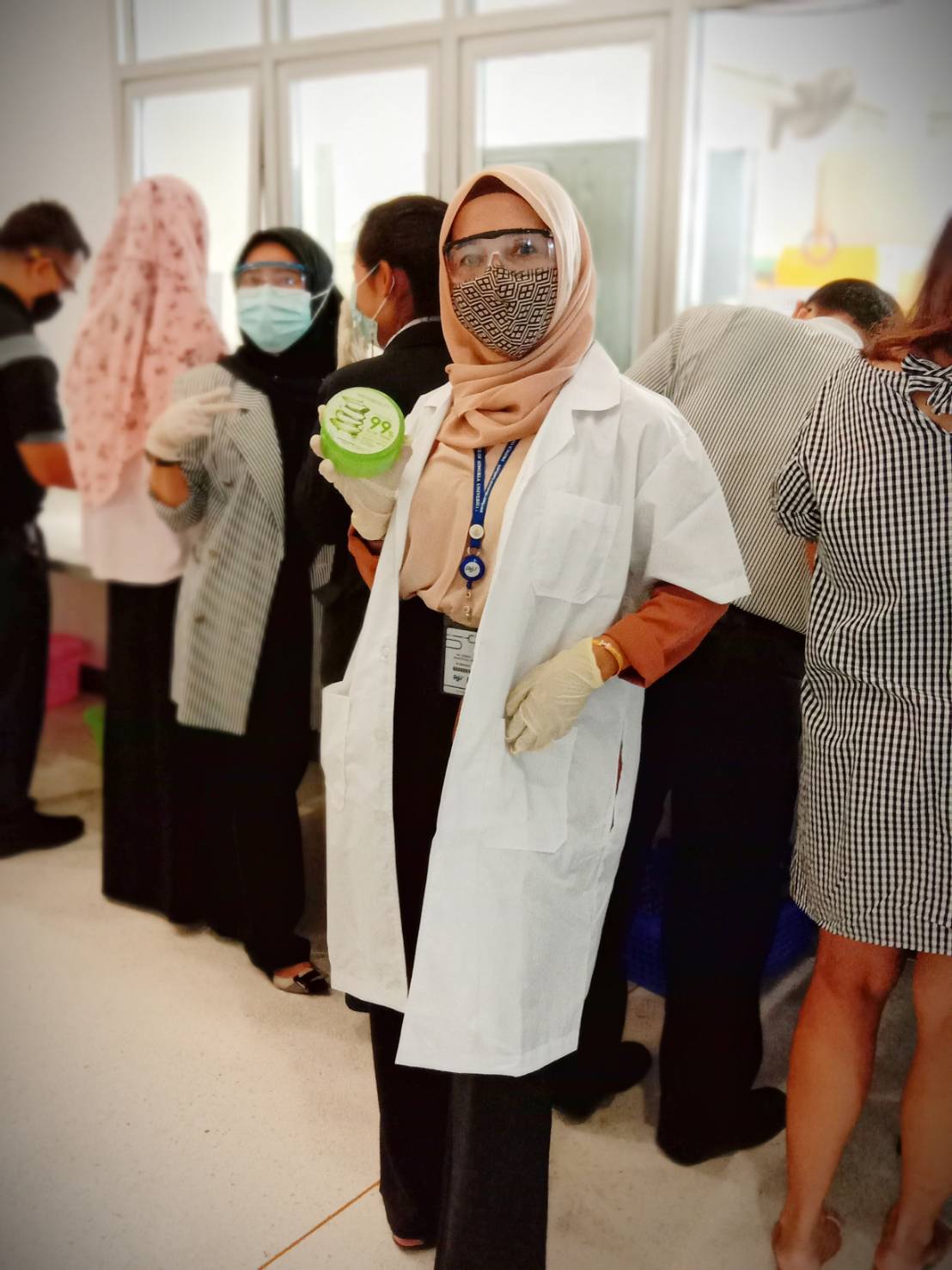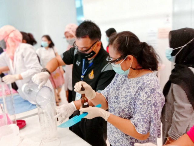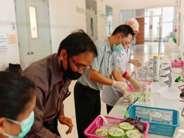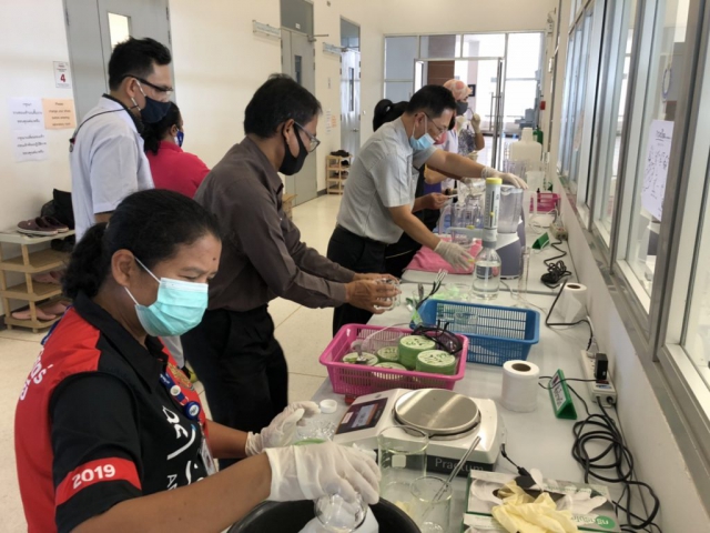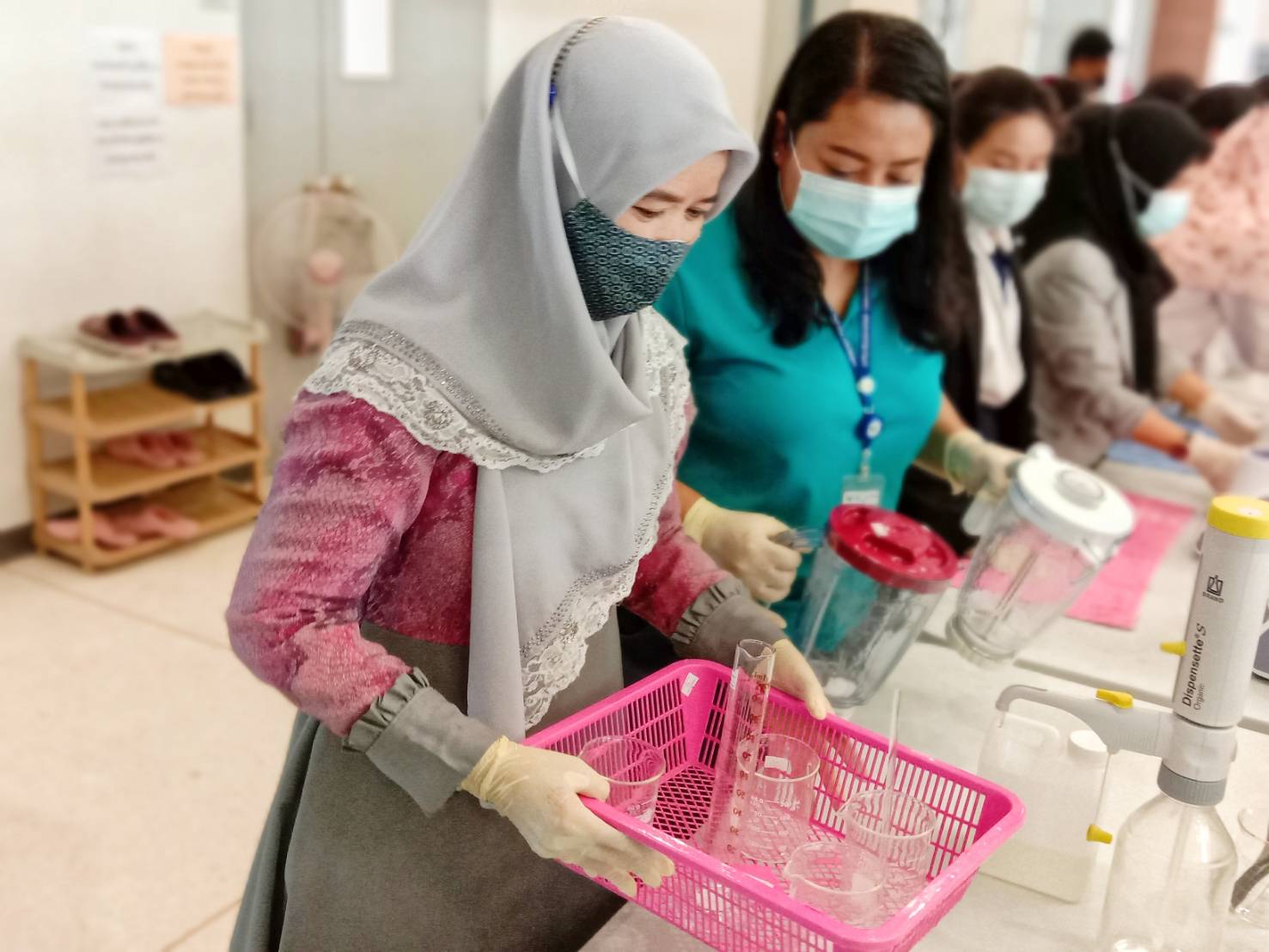 เมื่อวันที่ 29 ธันวาคม 2563 ที่ผ่านมา สำนักงานบริหาร ร่วมกับ ศูนย์เครื่องมือกลาง คณะวิทยาศาสตร์และเทคโนโลยี ร่วมกันผลิตแอลกอฮอล์เหลว 75% สูตร AloGel สำหรับล้างทำความสะอาดมือ (ได้รับอนุสิทธิบัตรแล้ว) ในการผลิตครั้งนี้ ได้ผลผลิตจำนวน 22,000 ซี.ซี. ซึ่งสามารถแบ่งบรรจุใส่ขวดสเปรย์ขนาก 50 ซี.ซี. ได้จำนวน 440 ขวด เพื่อให้บุคลากรของคณะฯ และผู้ที่มาติดต่อได้ใช้ป้องกันเชื้อโรคกันต่อไป