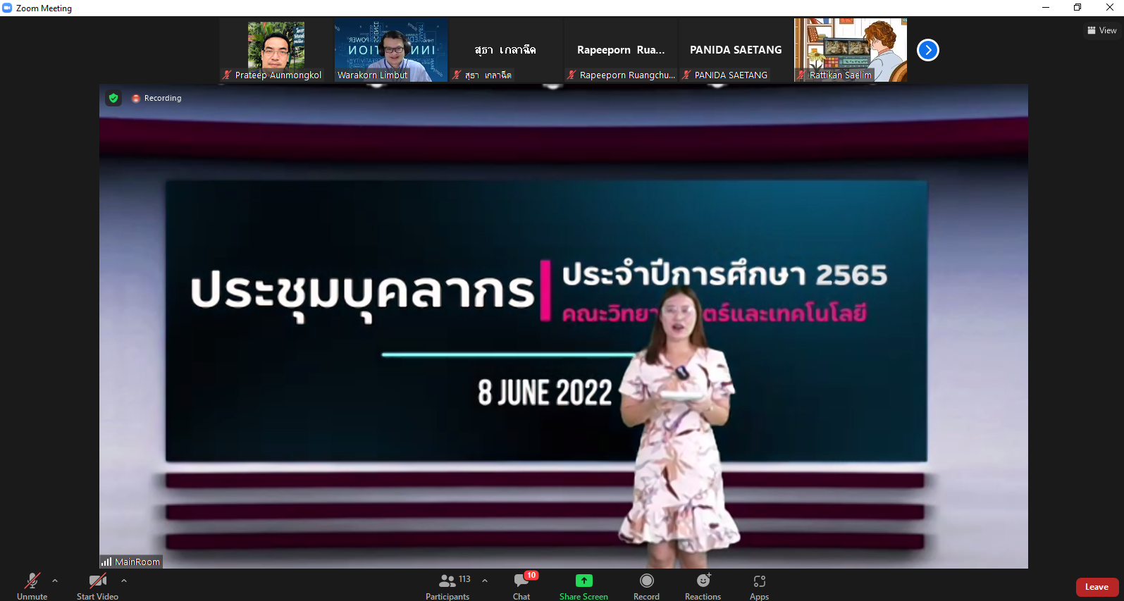 กิจกรรมการประชุมบุคลากรคณะวิทยาศาสตร์และเทคโนโลยี ประจำปี 2565