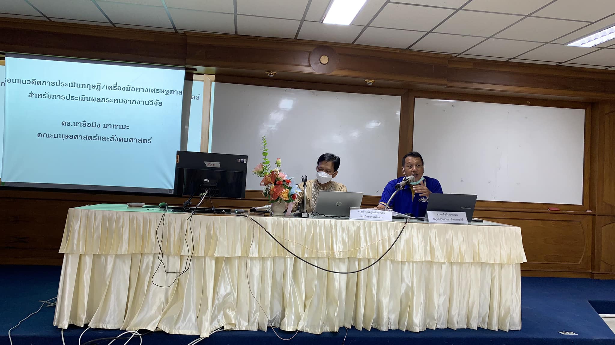 วันที่ 5 ตุลาคม 2565 เวลา 08.30-13.00 น. หน่วยสนับสนุนวิจัย นวัตกรรม และบริการวิชาการ จัดโครงการเตรียมความพร้อมนักวิจัย ปีงบประมาณ 2566 ซึ่งจัดเป็นครั้งที่ 1/2566 ในหัวข้อ "การคำนวณและประเมินความคุ้มค่าในทางเศรษฐศาสตร์ของงานวิจัย" โดยผู้เชี่ยวชาญด้านเศรษฐศาสตร์ ดร.นายือมิง มาหามะ คณะมนุษย์ศาสตร์และสังคมศาสตร์ และดร.มูฮำหมัดสูใฮมี ยานยา คณะวิทยาการสื่อสาร ซึ่งทั้งสองท่านร่วมงานวิจัยกับคณะฯ มาอย่างยาวนาน กิจกรรมนี้ จัดขึ้นเพื่อรองรับ 2 ทุนใหญ่ที่กำลังเข้ามา คือ ทุนหน่วยบริหารและจัดการทุนด้านการเพิ่มความสามารถในการแข่งขันของประเทศ (บพข.) และ หน่วยบริหารและจัดการทุนด้านการพัฒนาระดับพื้นที่ (บพท.) รวมถึงแหล่งทุนจากหน่วยงานภายนอกอื่น ๆ เพื่อส้รางความเข้มแข็งให้กับนักวิจัยของคณะฯ อีกทางหนึ่งด้วย