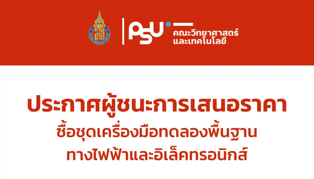 ตามที่ มหาวิทยาลัยสงขลานครินทร์ วิยาเขตปัตตานี ได้มีโครงการ ซื้อชุดเครื่องมือทดลองพื้นฐานทางไฟฟ้าและอิเล็คทรอนิกส์ จำนวน 1 ชุด นั้น โดยผู้ที่ได้รับคัดเลือก ได้แก่ บริษัท ทีอีเอสอาร์ จำกัด โดยเสนอราคา เป็นเงินทั้งสิ้น 499,200.- บาท