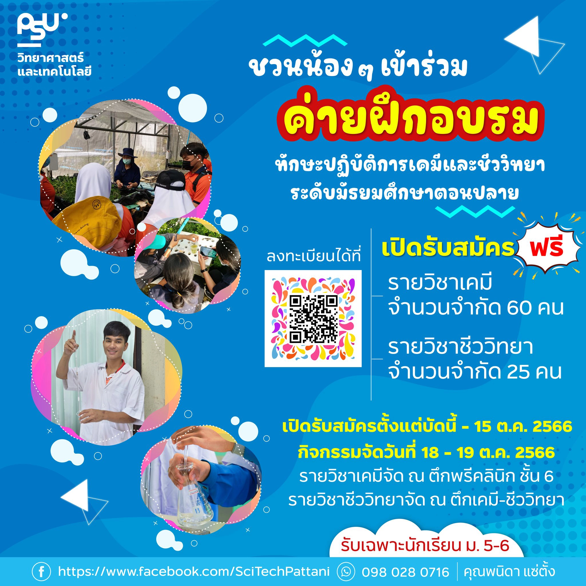 รับสมัครนักเรียนชั้น ม.5-6 เข้าร่วมอบรมเชิงปฏิบัติการ รายวิชาเคมี – ชีววิทยา (ฟรี)