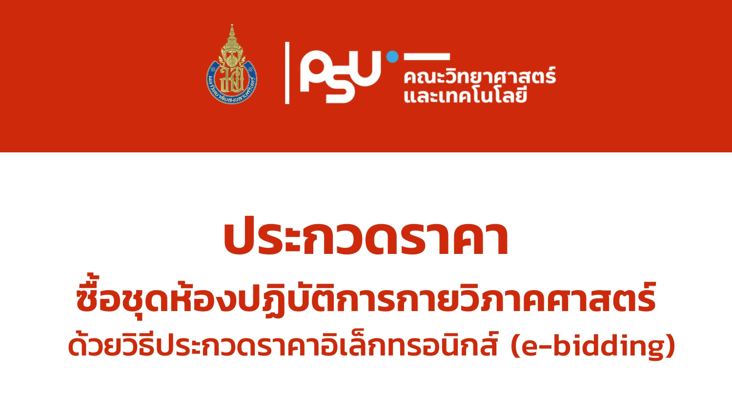 คณะวิทยาศาสตร์และเทคโนโลยี มีความประสงค์จะประกวดราคาซื้อ ชุดห้องปฏิบัติการกายวิภาคศาสตร์ 1 ชุด ด้วยวิธีประกวดราคาอิเล็กทรอนิกส์ โดยราคากลางของการประกวดราคาครั้งนี้เป็นเงิน 864,300 บาท ผู้สนใจยื่นข้อเสนอและเสนอราคาทางระบบจัดซื้อจัดจ้างภาครัฐด้วยอิเล็กทรอนิกส์ ในวันที่ 7 มีนาคม 2566 เวลา 13.00-16.00 น.