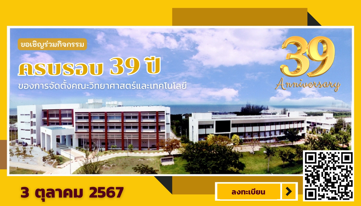 ขอเชิญร่วมกิจกรรมวันครบรอบ 39 ปี ของการจัดตั้งคณะวิทยาศาสตร์และเทคโนโลยี