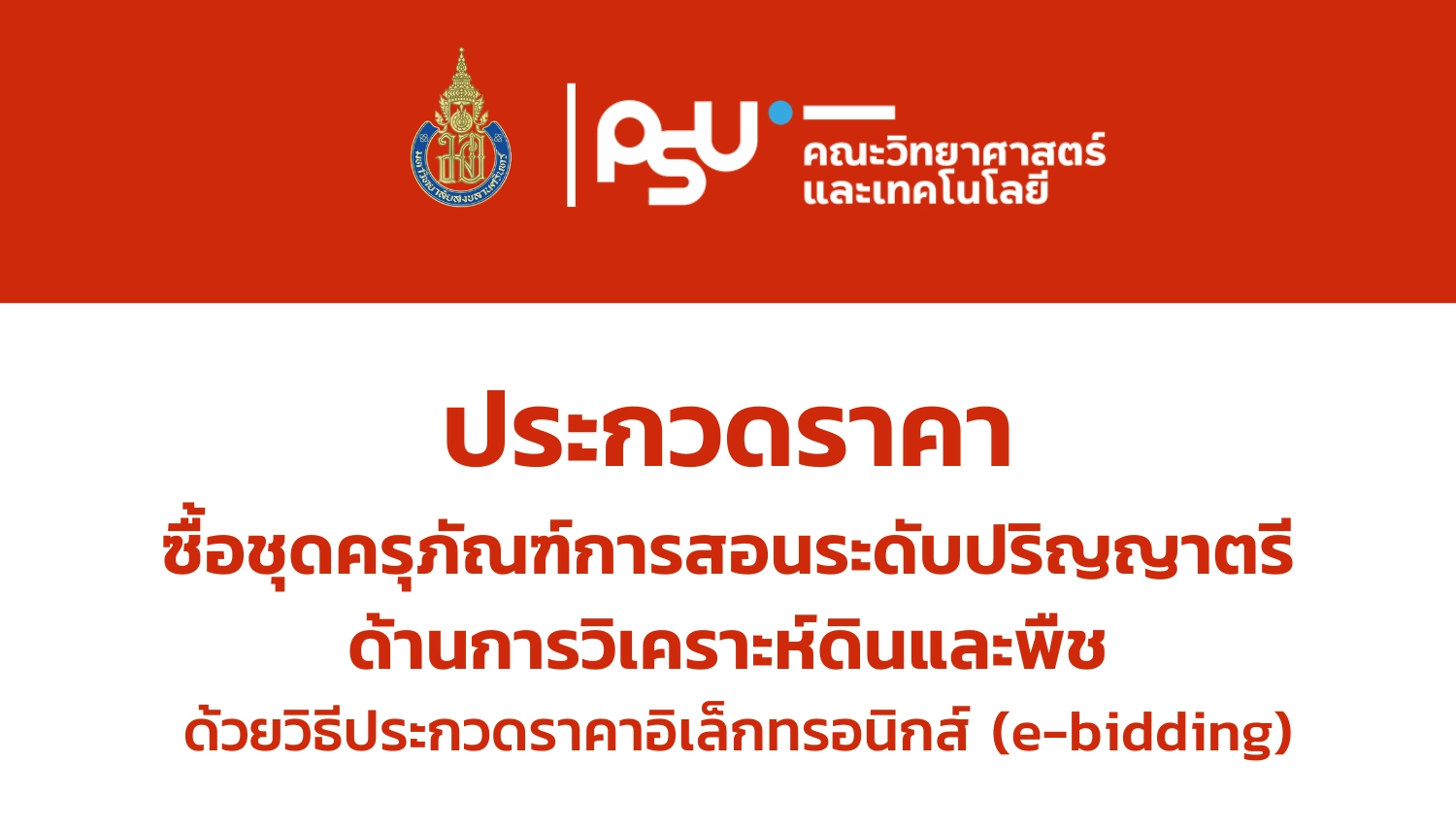 คณะวิทยาศาสตร์และเทคโนโลยี ประสงค์ประกวดราคาซื้อชุดครุภัณฑ์การสอนระดับปริญญาตรีด้านการวิเคราะห์ดินและพืช จำนวน 1 ชุด ด้วยวิธีประกวดราคาอิเล็กทรอนิกส์ (e-bidding)
