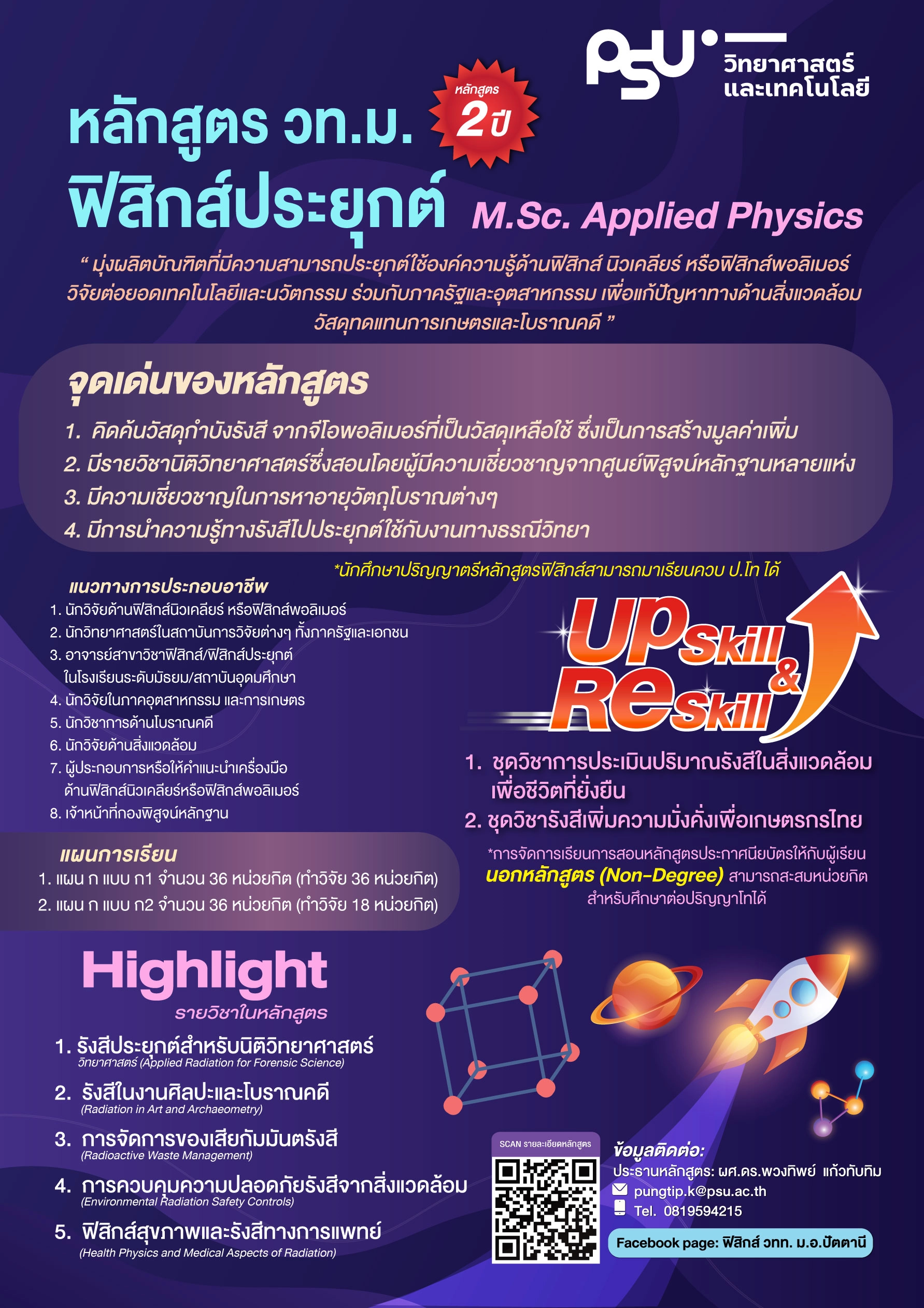 ประธานหลักสูตร (ผศ.ดร. พวงทิพย์ แก้วทับทิม) pungtip.k@psu.ac.th